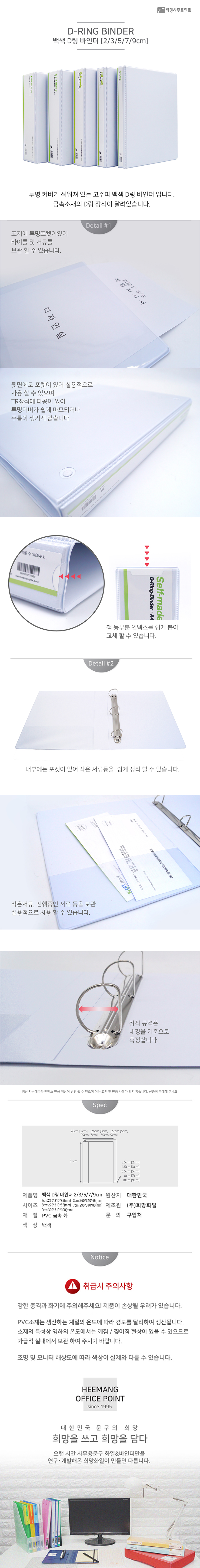 희망 백색 3공 D링 바인더 3CM