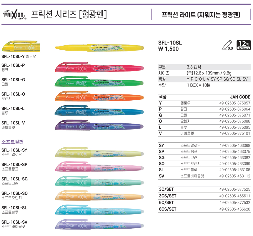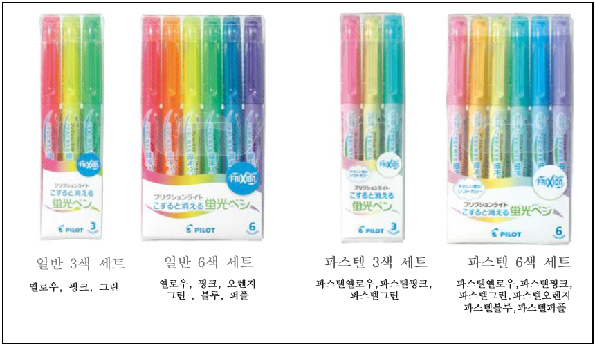 파이롯트 Pilot 프릭션 형광펜 (지워지는 형광펜) 3색 6색 세트