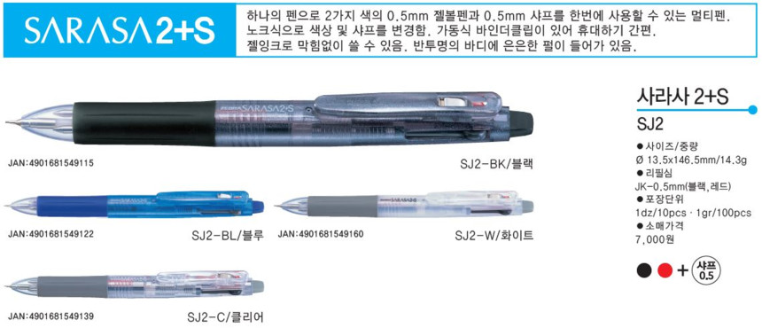 - 사라사 멀티펜 2+1 /2색볼펜+샤프 (JK 0.5 리필심)