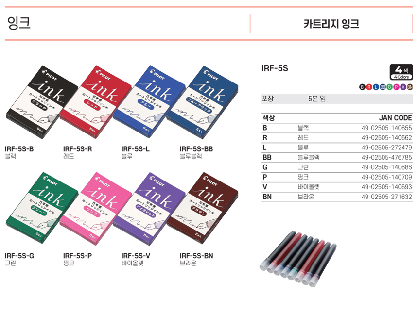 파이롯트 IRF-5S 만년필 카트리지 잉크