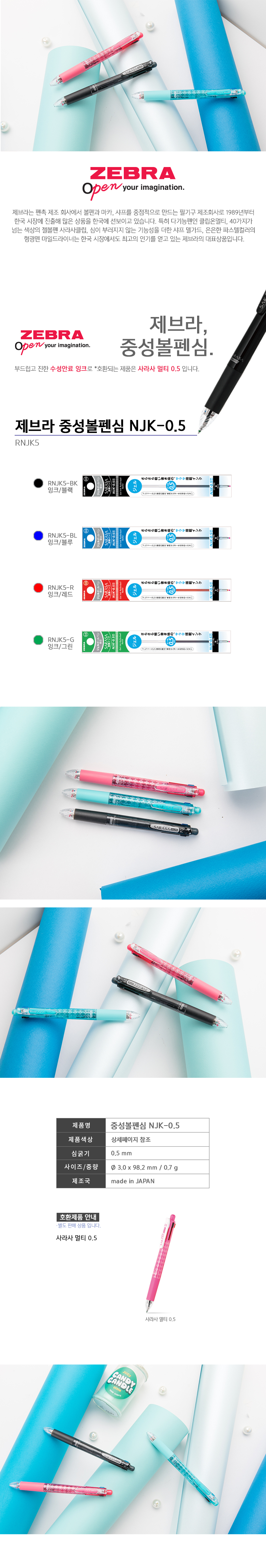 제브라 사라사 멀티펜 볼펜 리필심 4&1 용 NJK 0.5mm