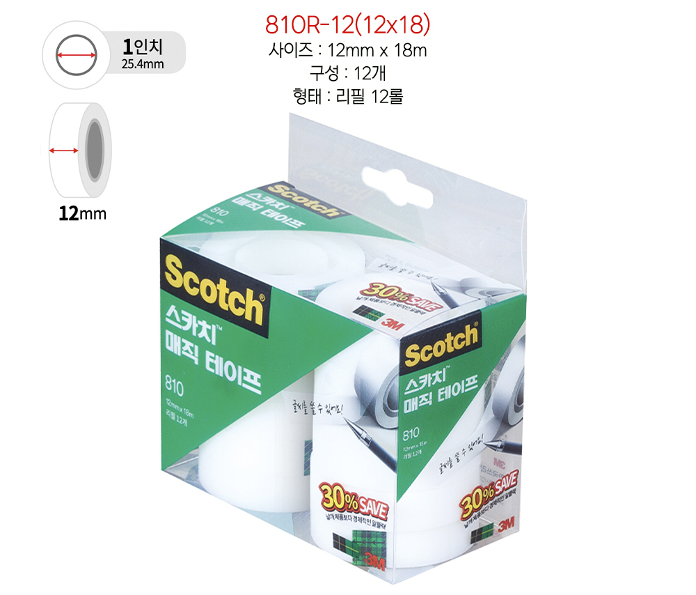 3M 스카치 매직 테이프 세이빙팩 리필 810R-12 (12mmx18m)