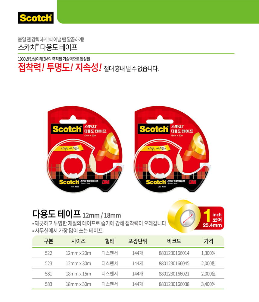 3M 스카치 테이프 다용도 583D (18mmX30M)