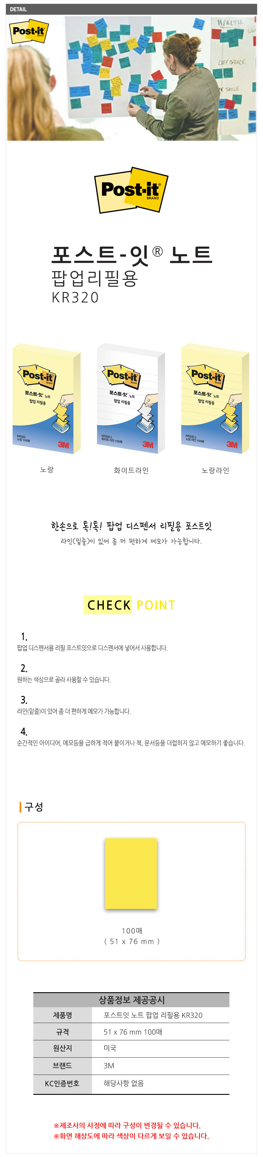 3M 포스트잇 팝업 리필용 노트 KR320(51X76)