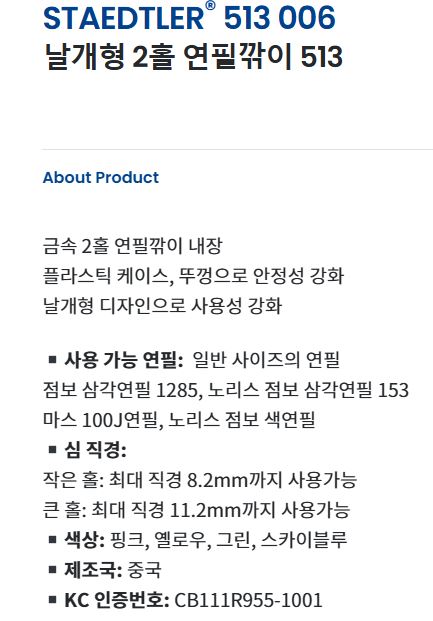 - 사용 가능 연필: 일반 사이즈의 연필점보 삼각연필 1285, 노리스 점보 삼각연필 153마스 100J연필, 노리스 점보 색연필