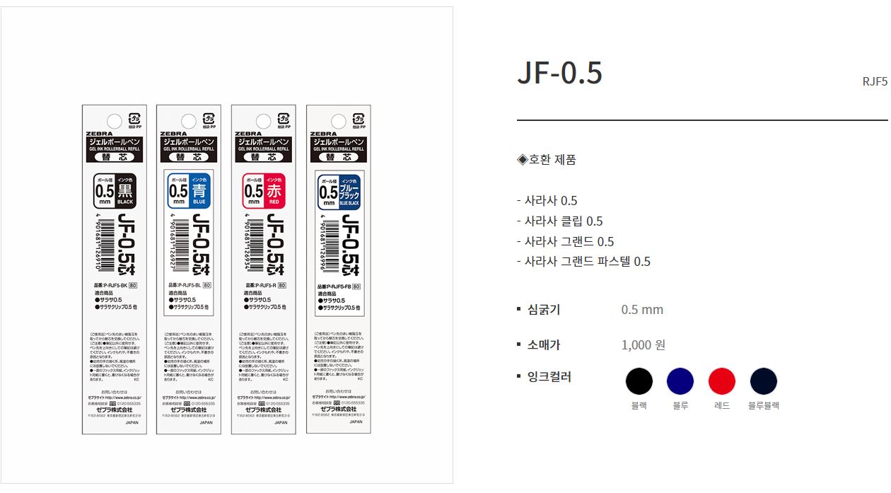 제브라 사라사클립 볼펜 리필 JF 0.5