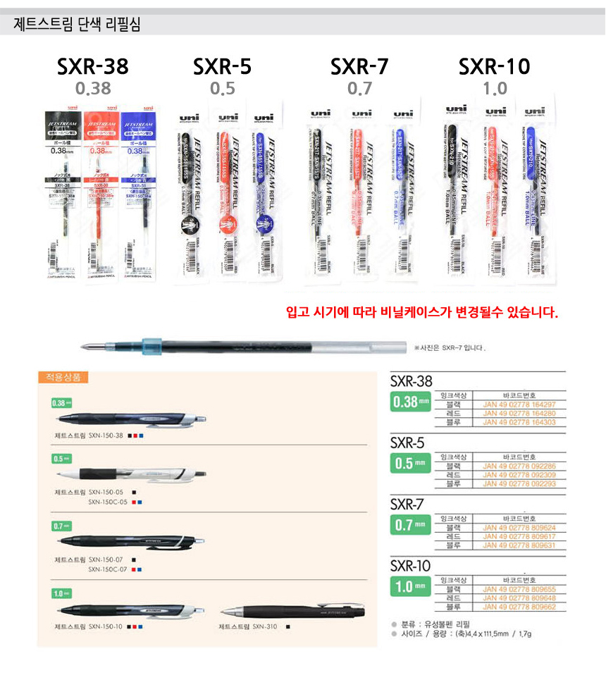 - 구매 TIP) 같은 단색용 리필끼리 SXR-38 0.38/SXR-5 0.5/SXR-5 0.7 / SXR-10 1.0 끼리는 호환이 가능합니다.