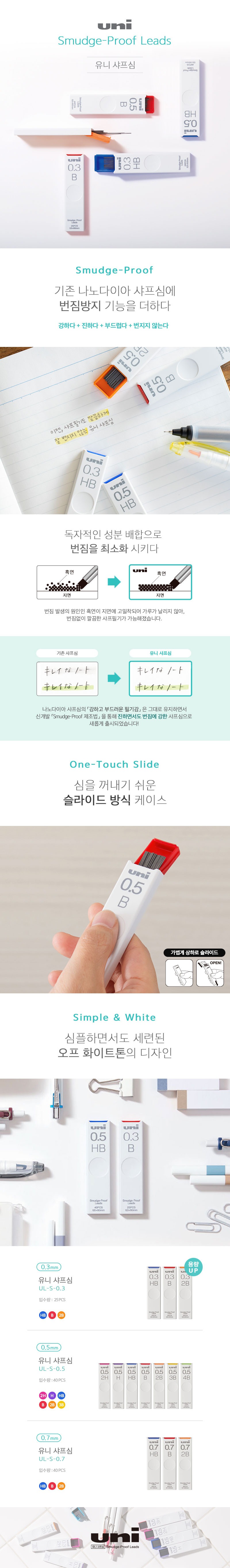 유니 나노다이아 샤프심 스머지 푸르프 0.5mm B UL-S-0.5