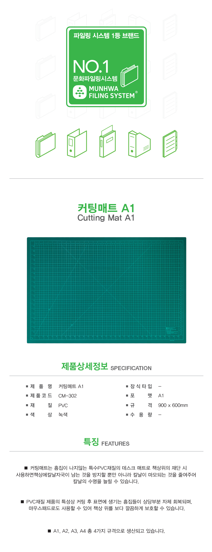 - 커팅매트는 흠집이 나지않는 특수PVC재질의 데스크 매트로 책상위의 재단 시 사용하면 책상에 칼날자국이 남는 것을 방지할 뿐만 아니라 칼날이 마모되는 것을 줄여주어 칼날의 수명을 늘릴 수 있습니다.