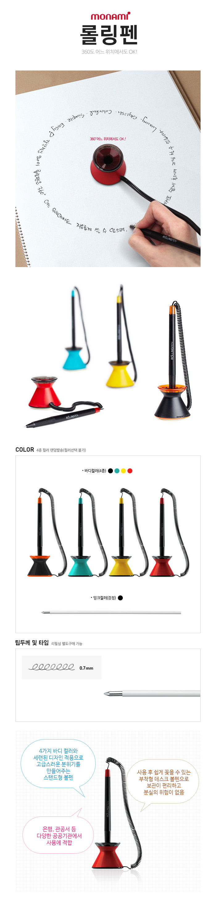모나미 롤링펜 0.7mm 스탠드형 볼펜